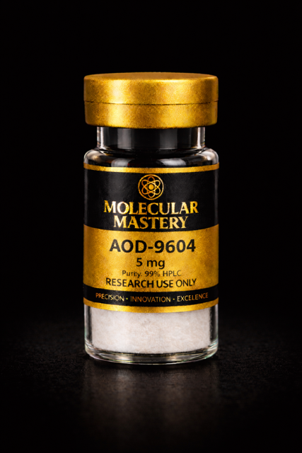 AOD-9604 (Advanced Obesity Drug) is a synthetic peptide fragment derived from the C-terminus of human growth hormone (HGH), specifically amino acids 176–191. Unlike full-length HGH, AOD-9604 is designed to stimulate fat burning without affecting blood sugar or growth factors. It is widely studied for its potential to promote lipolysis, reduce adipose tissue, and support weight management in experimental models.